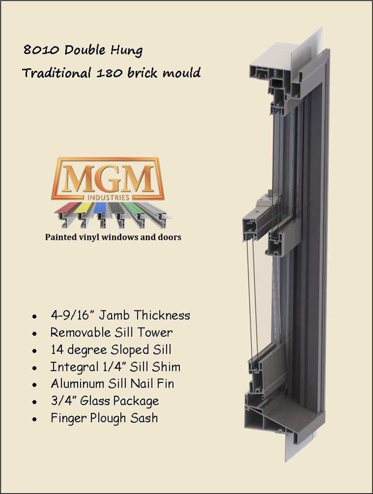 If you’re in the market for a solid vinyl window that looks like a traditional wood window from the curb, has a true 180 brickmould, a 14 degree slope sill-like a traditional style wood window then the 5610 Series single hung and/or the 8010 Series double hung is the window for you.
